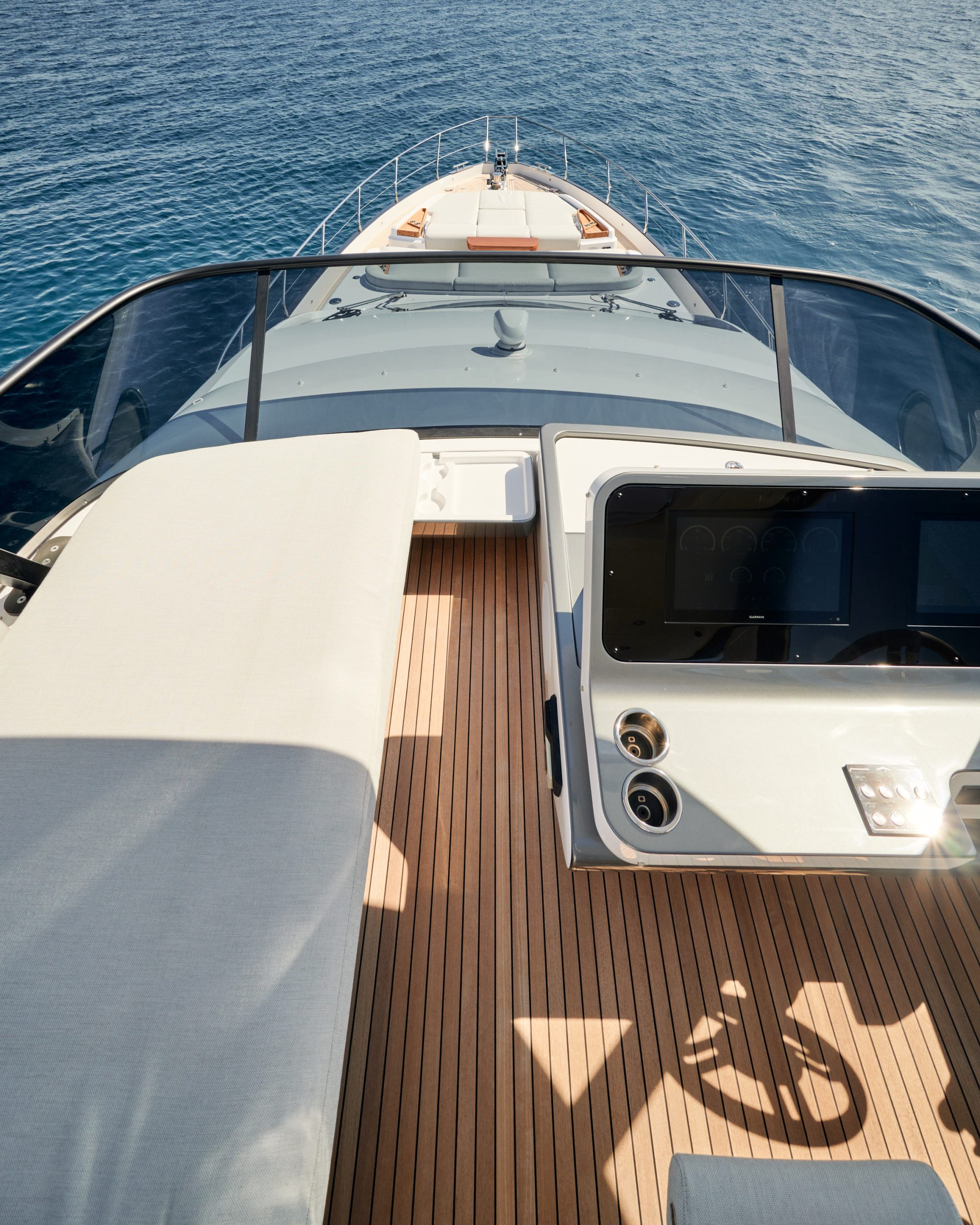 Foredeck lounge with convertible bench/sunbed in Batyline fabric