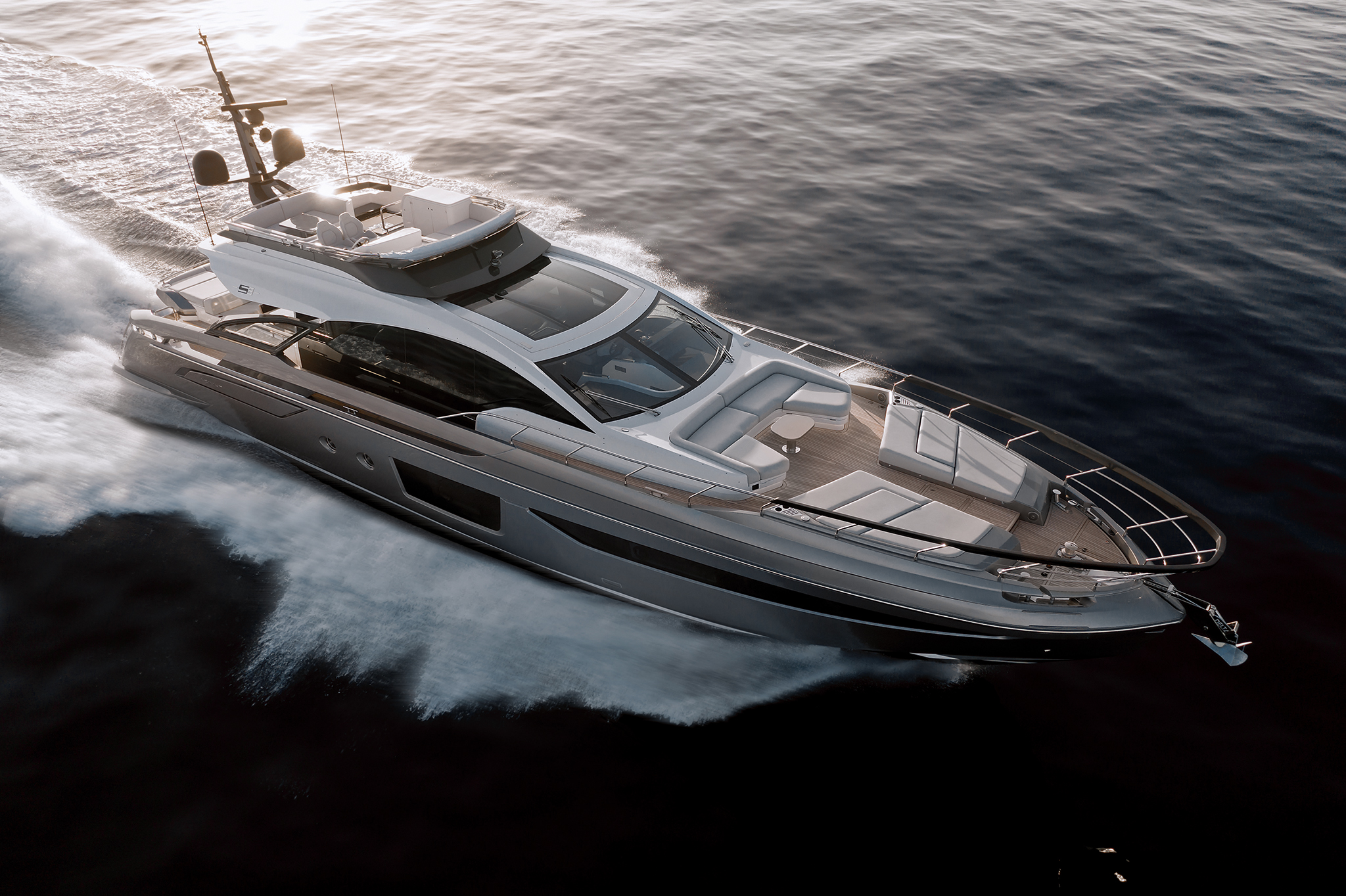 The 24-meter beauty of the Series, Azimut S8, is a tech-savvy sport yacht elevated by environmentally- responsible etiquette. Her wind-drawn design and avant- garde attitude come to life through a carbon fiber soul, epitomizing absolute performance and silence while minimizing fuel consumption beyond the expectations