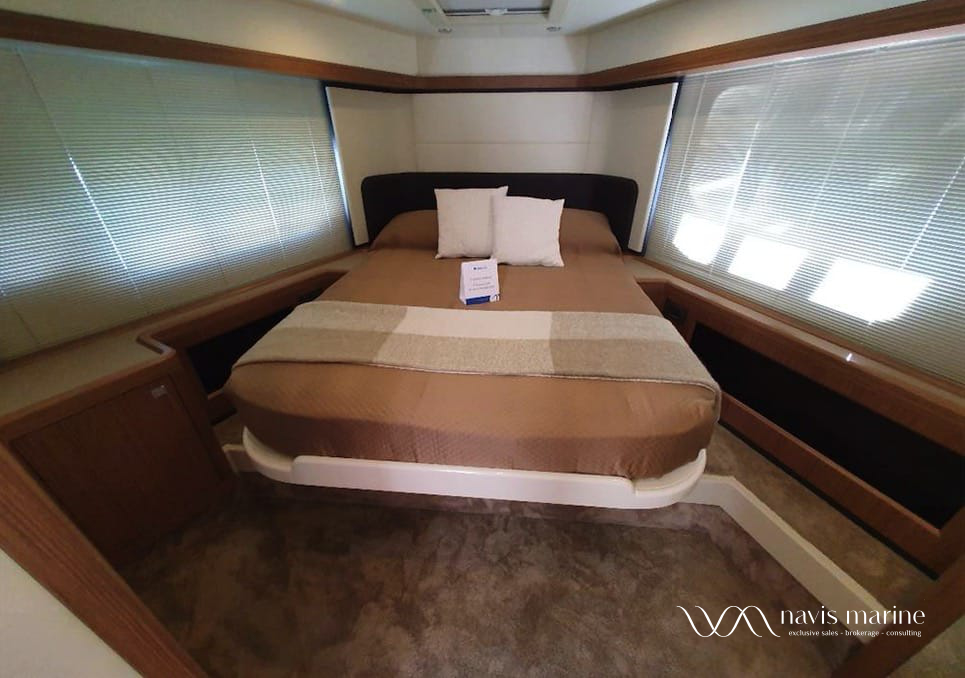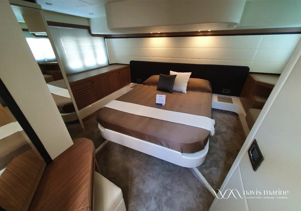 - Fourth aft cabin equipped with bed, furniture in walnut wood, wardrobe, opening porthole, wide window with blinds, HPL floor, toilette with WC, sink, independent access from platform and open door alarm on dashboard (1)