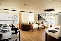The interiors, created for relaxed and informal comfort and reminiscent of an elegant open space loft, are designed by New York firm Bonetti/Kozerski Architecture, which is making its debut in the yachting world and has brought in new ideas and unprecedented design solutions. The interior settings are characterised by a chic and minimalist elegance.