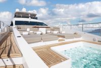 Benetti Veloce 140 is the first in the Italian superyacht builder’s fast displacement series of yachts. Pierluigi Ausonio Naval Architecture Studio and the Azimut-Benetti Research and Development Centre developed the yacht’s Displacement to Planing (D2P) hull design, which provides equally for an energy-saving, 12-knot cruise speed and the ability to reach speeds of more than 20 knots in complete comfort.