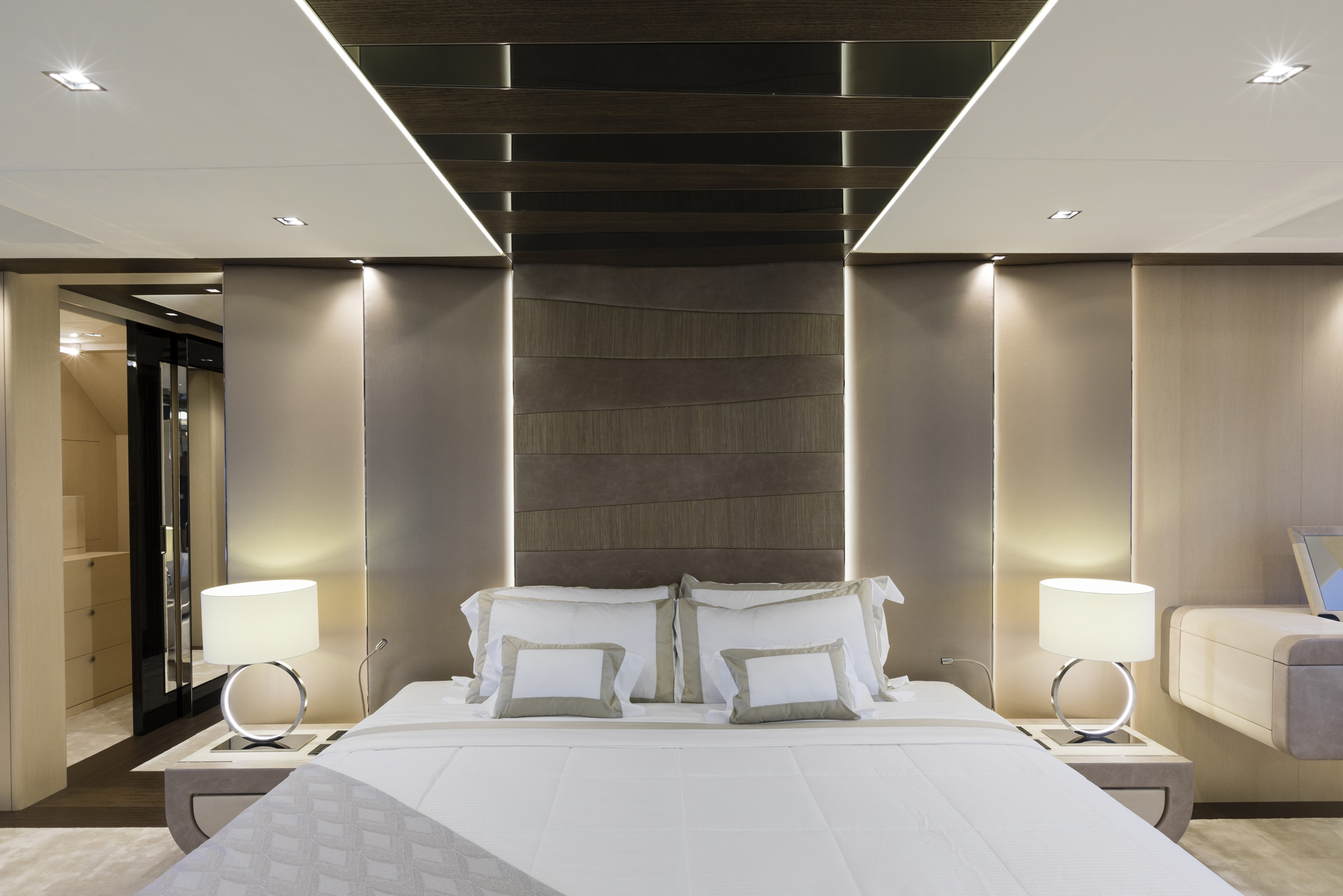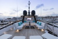 Key features include large floor-to-ceiling windows in the main salon for unrivalled panoramic vistas. A contemporary beach club at sea level – a must in today’s yachting market – is paired with an onboard swimming pool on the foredeck for guests to relax in at leisure or enjoy a workout with a view. Inviting sumptuous sun pads compete the package.