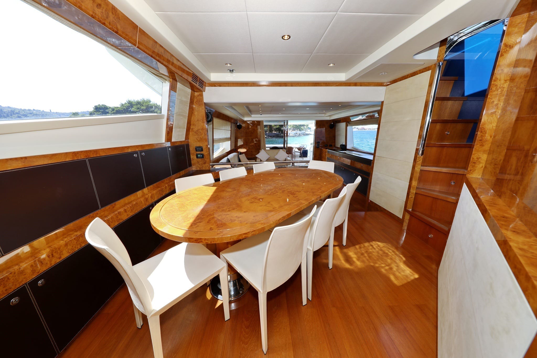 (1) Hi-fi system CD/DVD/MP3 player with speakers – Main Saloon, Navigating Bridge and Flybridge (2) Audio CD/DVD/MP3 device with speakers connected to TV – Master Stateroom and VIP Cabin (2) Audio CD/DVD/MP3 device with speakers – Twin Cabins