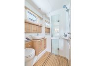 • 3 cabins, 3 heads and galley in helm station in white decapé oak wood