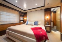 This luxury yacht is also fitted with ‘zero speed stabilizers’ which work at anchor, increasing on-board comfort when the yacht is stationary, particularly in rough waters.