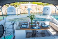 Guests will delight in the flybridge, which is a large haven with optional shading, a full dining table, large sunpads, navigation station, and uninterrupted views across the ocean. Yet more space to relax is on the forward deck, which is home to large sunpads – popular both for relaxing in Croatia’s balmy weather or gathering for evening sundowners.