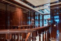 Lady Lena demonstrates the fine finishes and attention to detail you would expect from a yacht of this high pedigree. Timeless design interiors with rich wood paneling, cream colored soft furnishings and fine art work together to create an opulent inside space. Large windows make the most of the surrounding views and fill the interiors with light. The main salon is the perfect place for guests to gather and enjoy a glass of champagne, or to sit down together for a gourmet meal prepared by the talented on-board chef. The second salon offers a more relaxed space, complete with bar, entertainment center and lounge seating, with direct access to the beautiful aft upper deck. Here, enjoy al fresco dining at the full length dining table or stroll the wrap around deck to reach the expansive relaxation space on the vessel’s foredeck – ideal for sunset cocktails and canapes.