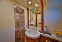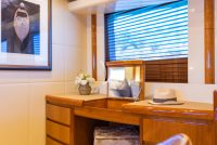 Able to welcome eight guests, Novela features four spacious cabins: the master, VIP and two twins which are able to convert to large doubles. The split level master is a particularly impressive space, with a private office and main cabin on one level and dressing room and ensuite down a level, all complemented by wide views across the water through oversized windows. Like the master, the VIP is also full beam and with beautiful views. All accommodation features modern entertainment systems and stylish décor. Her extremely versatile accommodation layout makes her perfect for two couples, families, or any other charter group.