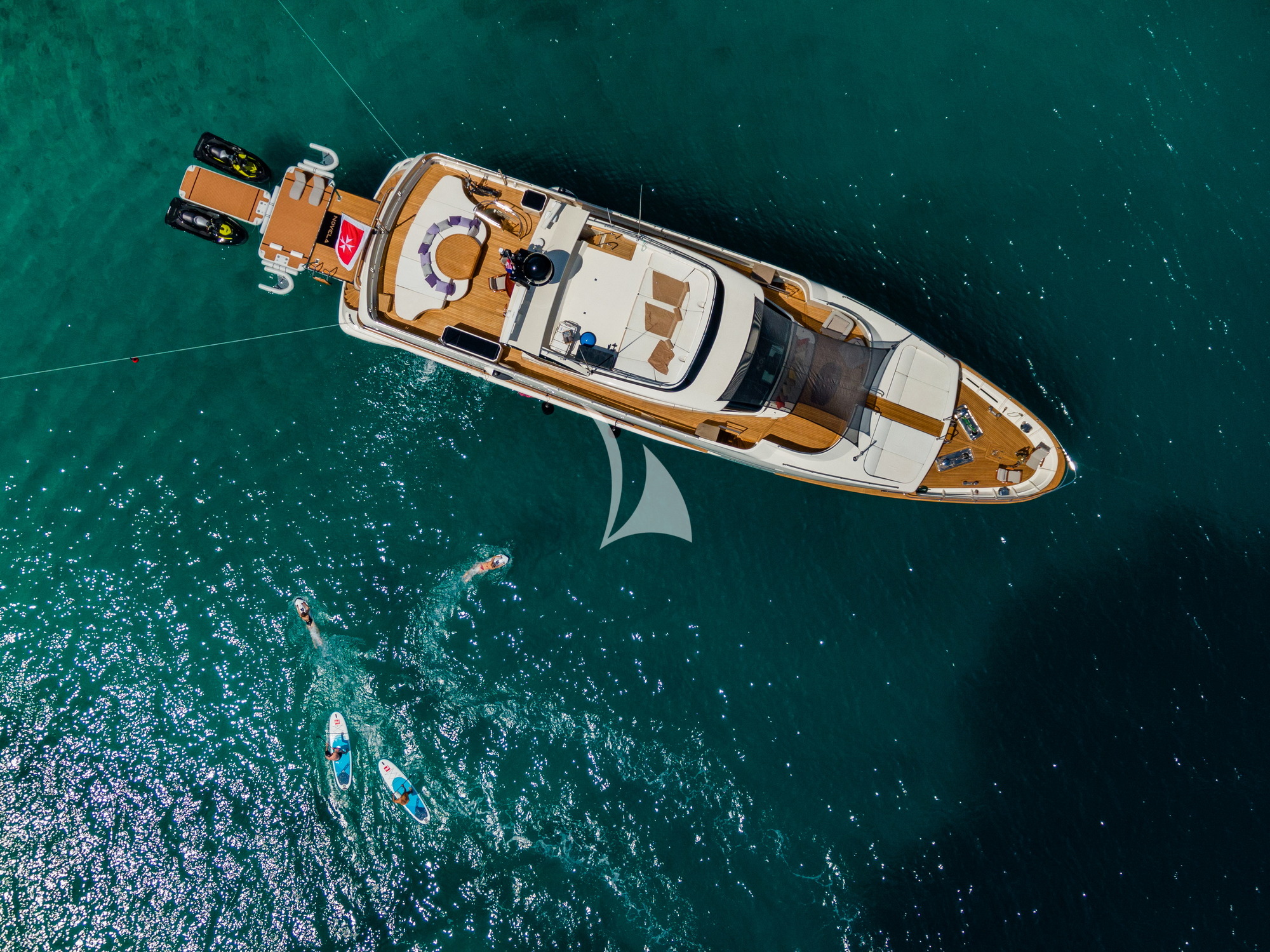 Perfect for those looking to make the most of their surroundings, Novela’s outdoor spaces are as generous as those indoors. The main aft deck features an al fresco dining set up and easy access down to the swimming platform. Moving up a deck, the skylounge connects directly with the stern flybridge with another al fresco dining set up and electric sun awning. A barbeque, crosstrainer and sunbathing space complete with Jacuzzi finish the picture. More seating is located on the bow, with large sunpads, and yet another outdoor space is a bonus sunpad area on the top deck! Her host of toys and tenders will make every charter even more unforgettable, with plenty of different water toys to enjoy.