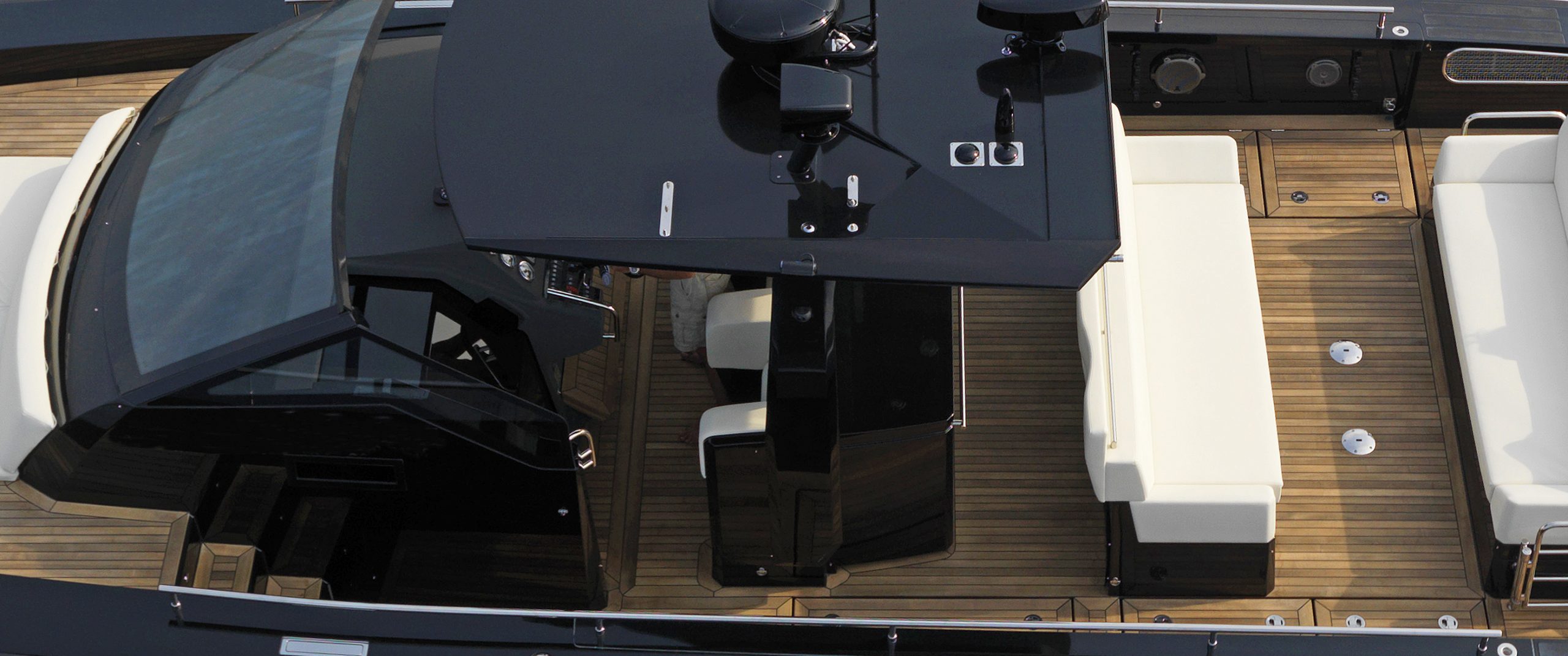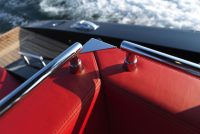 A spacious cockpit features three separate racing seats at the helm and three standing sport seats under the shade of the bimini. The teak deck provides open walkaround access from the raised foredeck to the additional seating, sun lounger and hydraulic bathing ladder aft – perfect for race spectating, swimming or picnicking at anchorage. A head with shower is located below decks, along with a double berth. Truly, a superyacht among tenders.